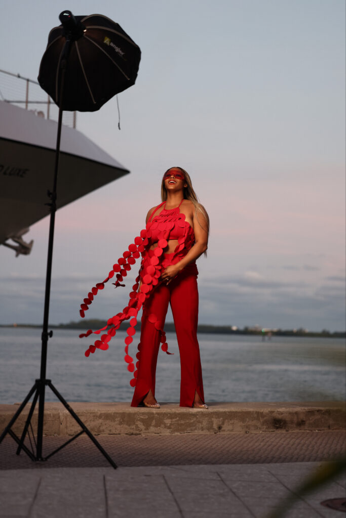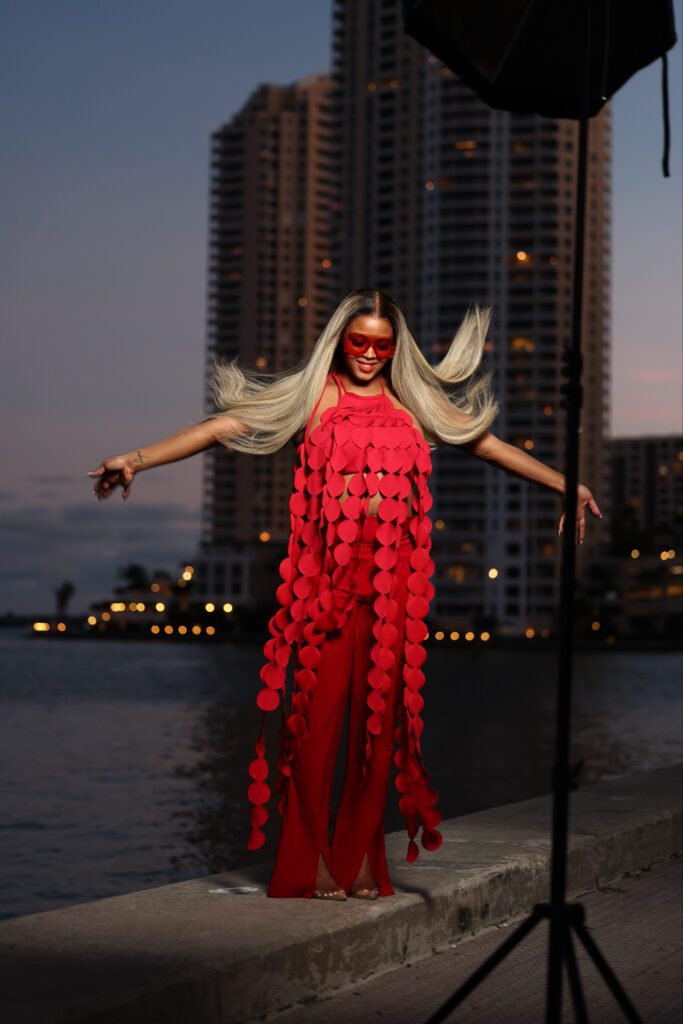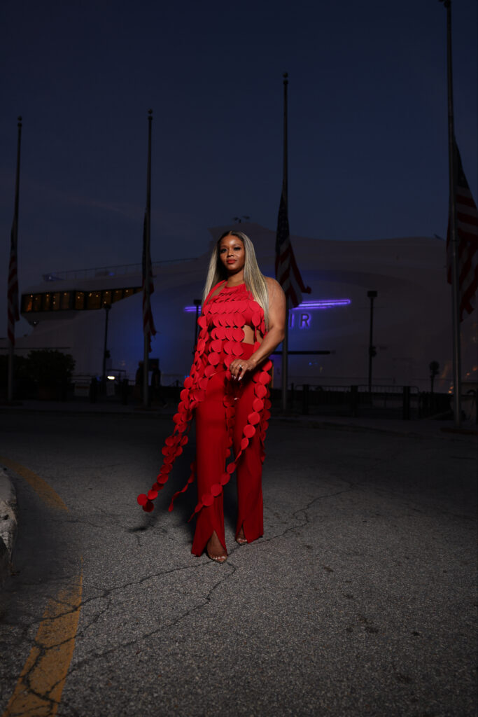 When in doubt, wearing the same color from head to toe has never steered me wrong. I felt bold in a red Shop Akira top and Norma Kamali pants, topped off by a wig from Becky with the Good Hair, and Gucci shades.