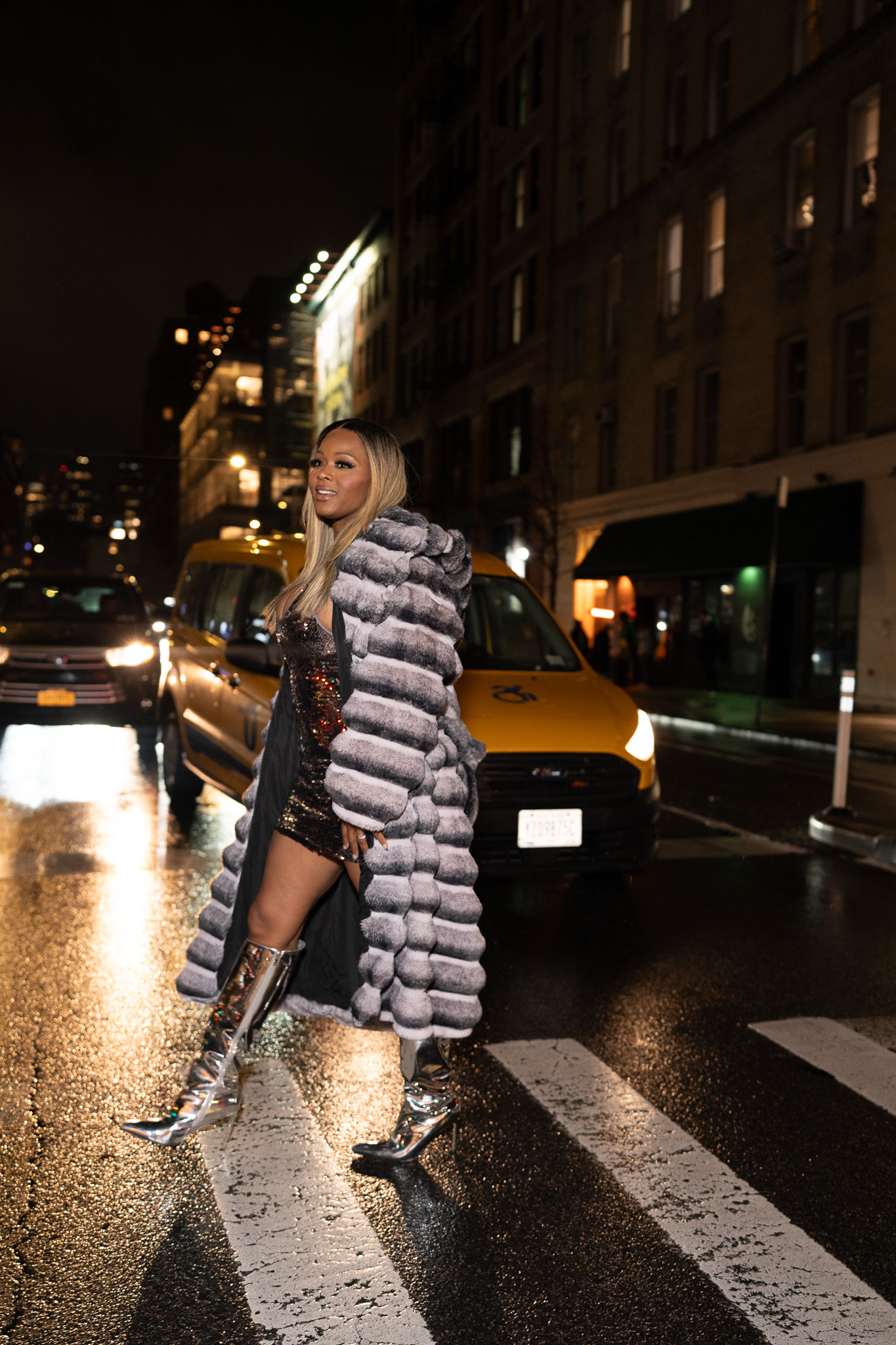 I wore a Retrofete Silver Dress and a Daniel’s Leather Chinchilla Fur Coat to my friend Legendary Damon’s “Ostentatious” Holiday Party.