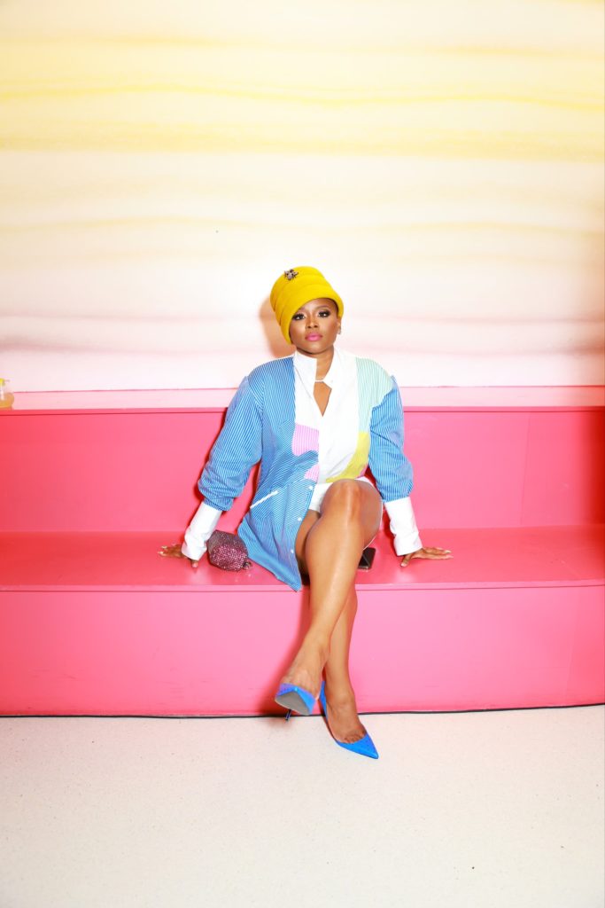 Jerome is a visionary and a talented creative. I first met him years ago when he was designing for Baby Phat, and he’s now collaborated with a multitude of brands, including Macys (I’m wearing a top from his last collection, and he’s rocking a look from his forthcoming drop).