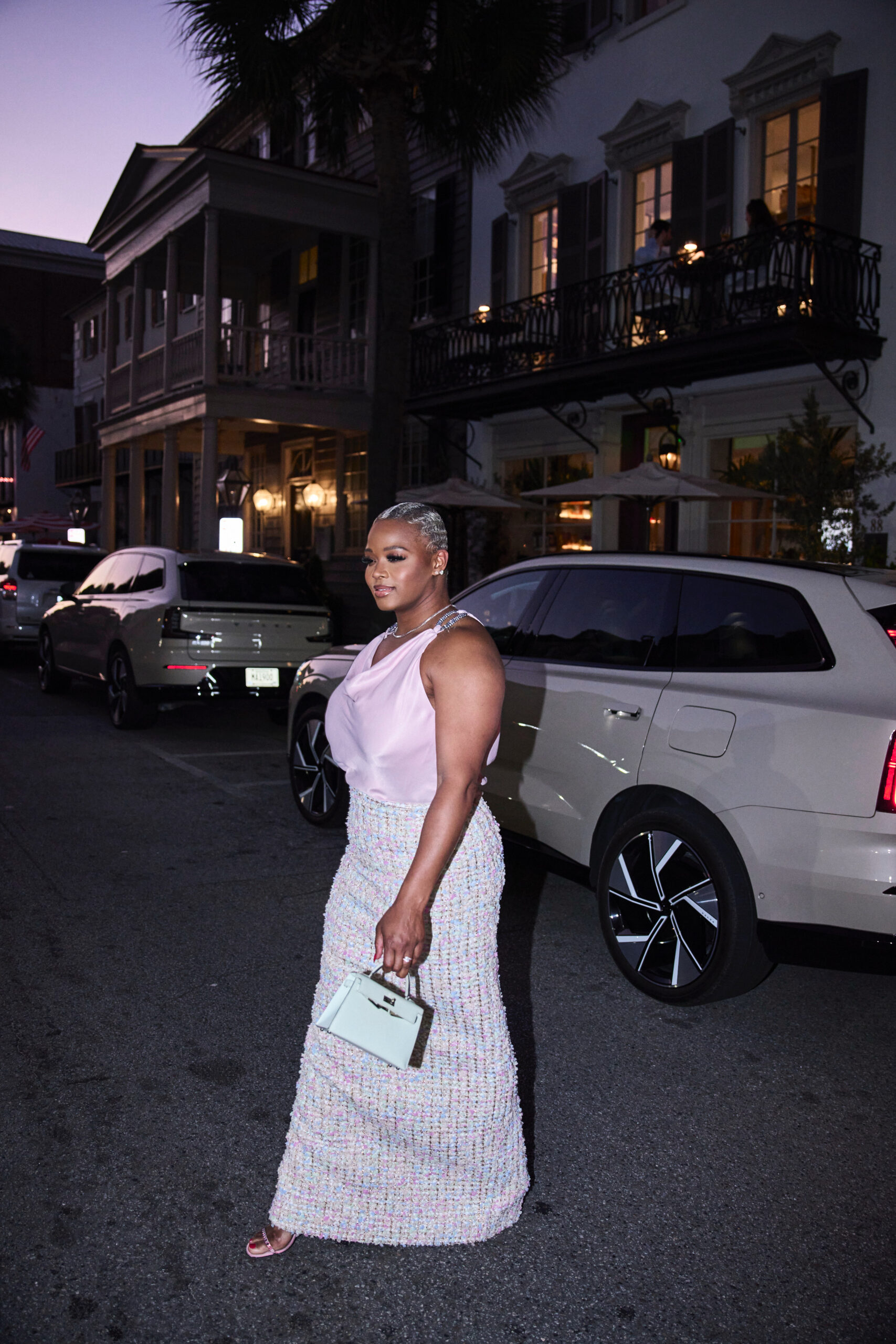 Reflecting on the partnership, Hudson shared, “This is where the car is made. There’s a triple connection for me. Our first family car was a Volvo, and my mom worked for Mack Trucks, which was later acquired by Volvo. They make the car that inspired the collection here in Charleston, where my mom was born. I had no idea there was a Volvo plant here, and when they decided to host the event in this city, it felt so full circle. I used to come here every summer — it really feels like home.”
