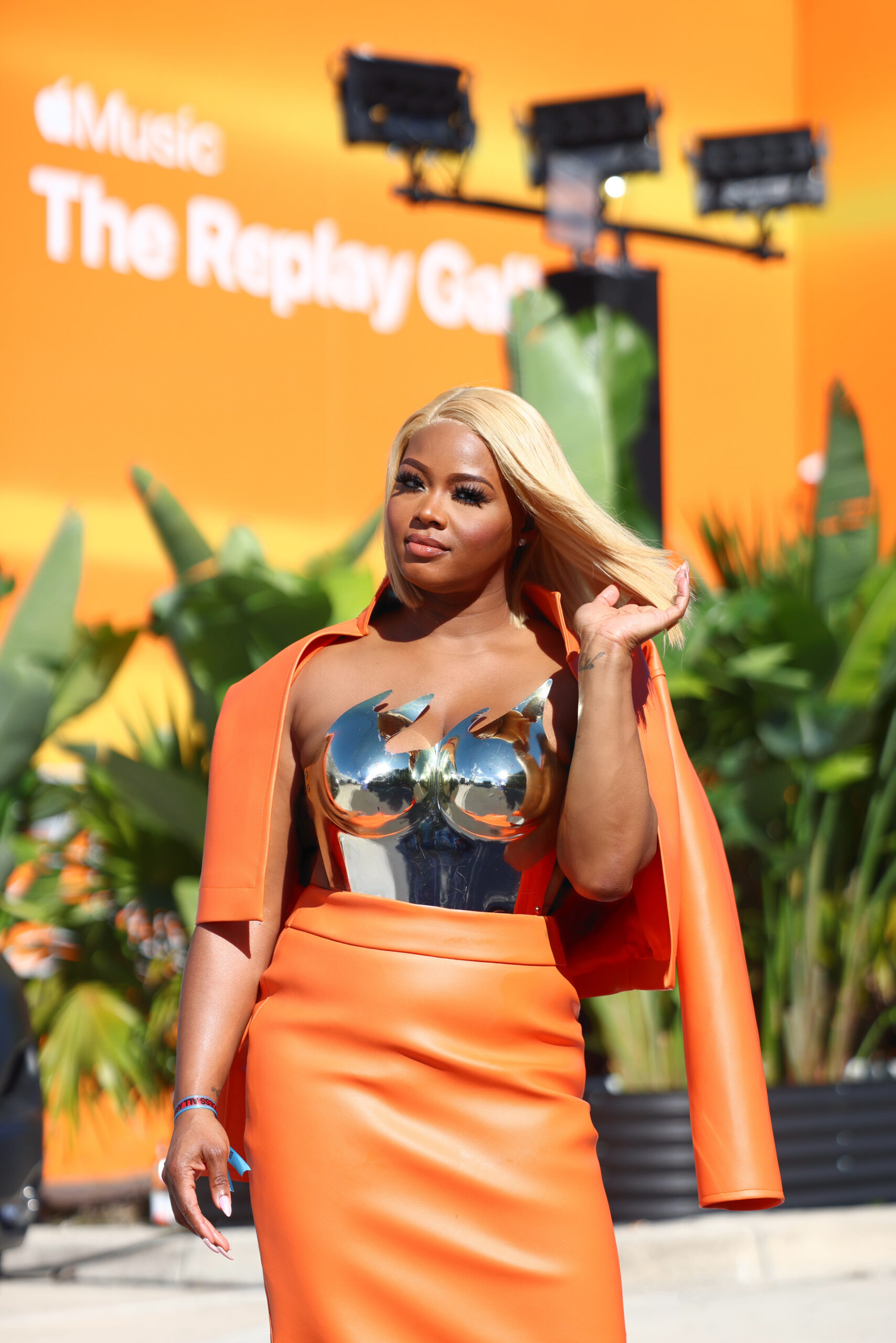 Day 2, I wore her orange leather jacket and skirt with a breastplate from The Ivy Showroom.
