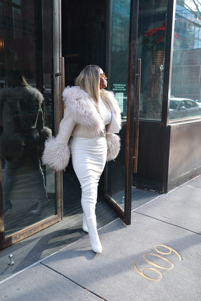 What’s less charming about New York City? The cold. I bundled up in a tailored FGMBespoke jacket, an Eterne dress from Revolve, and white boots for the visit.